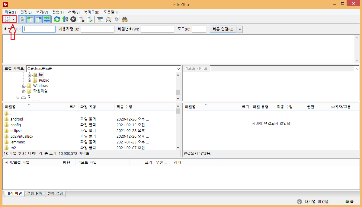 모든 입력이 완료되면 연결버튼을 눌러 FTP 연결을 시도합니다.