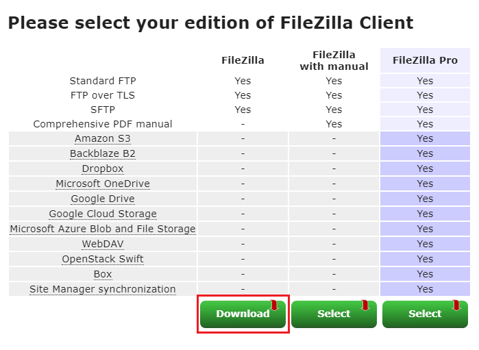 2.1 파일질라 홈페이지 filezilla-project.org/download.php?platform=win64 에 접속하여 설치파일 다운로드