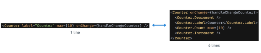 - API 복잡성 감소: 하나의 부모 컴포넌트에 모든 props를 집어넣고 하위 UI 컴포넌트로 향해 내려가는 대신 각 prop는 가장 적합한 SubComponent에 연결되어 있다.
