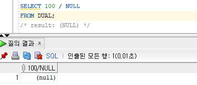 위의 쿼리를 실행하였을때 분모가 0이면 아래와 같은 형태로 바뀌어 실행되며 오류가 발생하지 않게 된다.