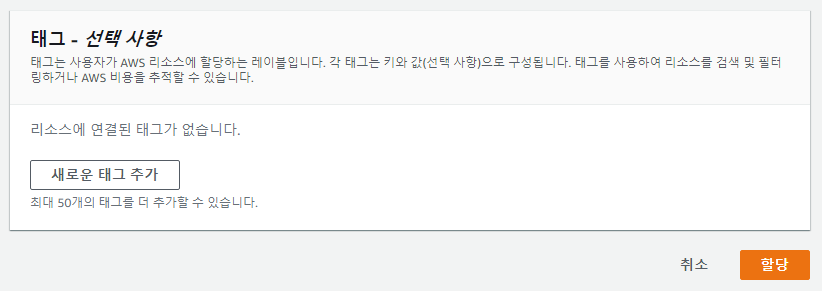 왼쪽 사이드바에서 탄력적IP 선택 후 탄력적 IP 주소 할당을 클릭합니다.