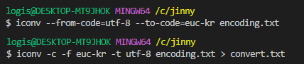 $ iconv --from-code=기존인코딩 --to-code=변환인코딩 파일명