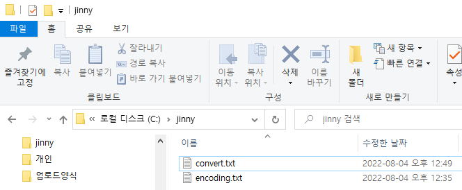 # 1. 현재 파일 그대로 인코딩 변환