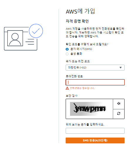 휴드폰을 통한 인증을 수행하게 됩니다.