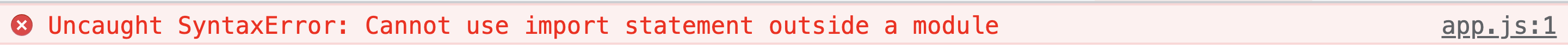만약 아래와 같은 코드를 웹팩과 같은 번들러 없이 브라우저에서 실행하면 에러가 발생한다.