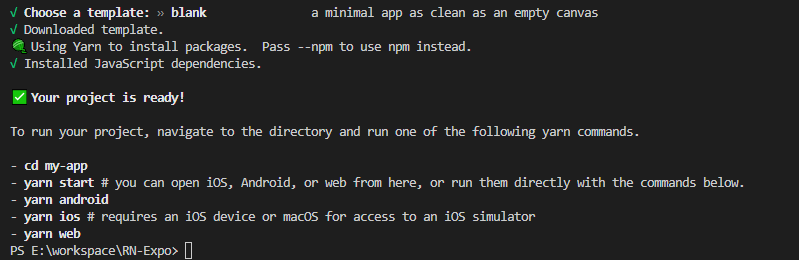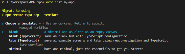 ◾ 프로젝트 생성할 폴더로 이동후 [ expo init 프로젝트명 ] 입력