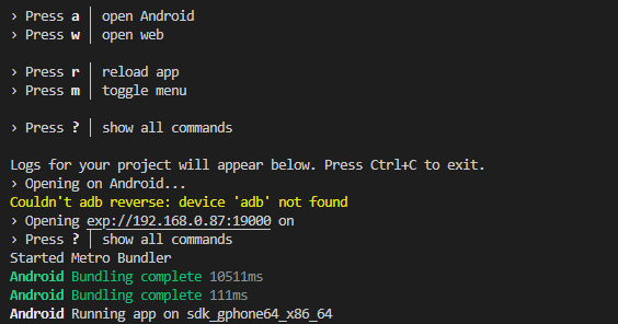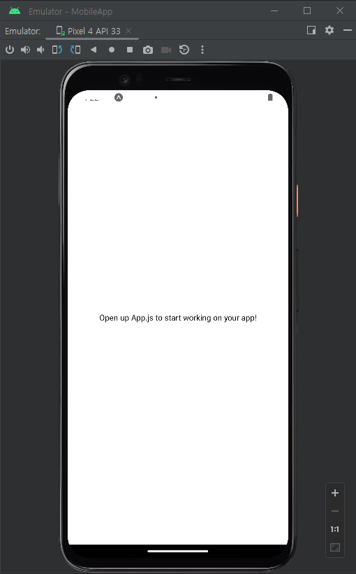 a버튼을 누를 경우 안드로이드 스튜디오에 설치된 가상장치에서 expo가 실행된다.