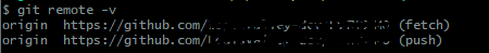 아래 명령어를 입력하면 현재 연결된 원격 저장소의 목록이 출력된다.