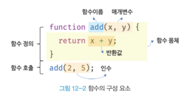정리하자면, 위 이미지에서 x와 y는 매개변수(Parameter, 인자)에 해당하며 함수의 정의에서 사용되는 변수이다. 그리고 add(2, 5)에서 2와 5를 전달인자(argument, 인수) 라고 부르며 파라미터에 할당되는 값을 말한다.